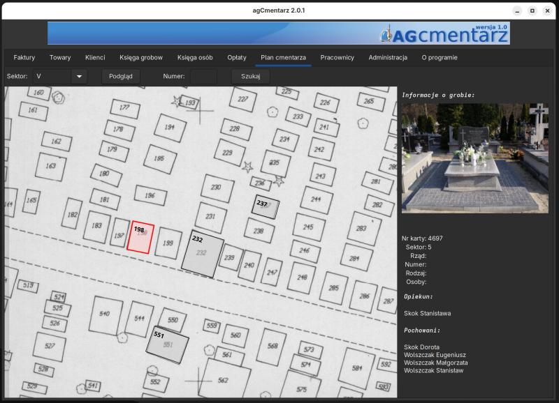 Grave data, information about the deceased, cemetery map with web preview. Supported, developed and in use since 2009.